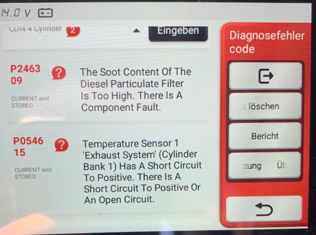 Alle Fehler gelöscht und dann zu einer Testfahrt ..... es kam kein Fehler mehr hoch ..und wir konnten die Regeneration anstoßen ...