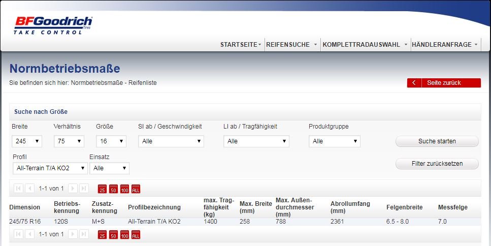 Re: Luftdruck BFGoodrich All-Terrain T/A KO2 245/75R16