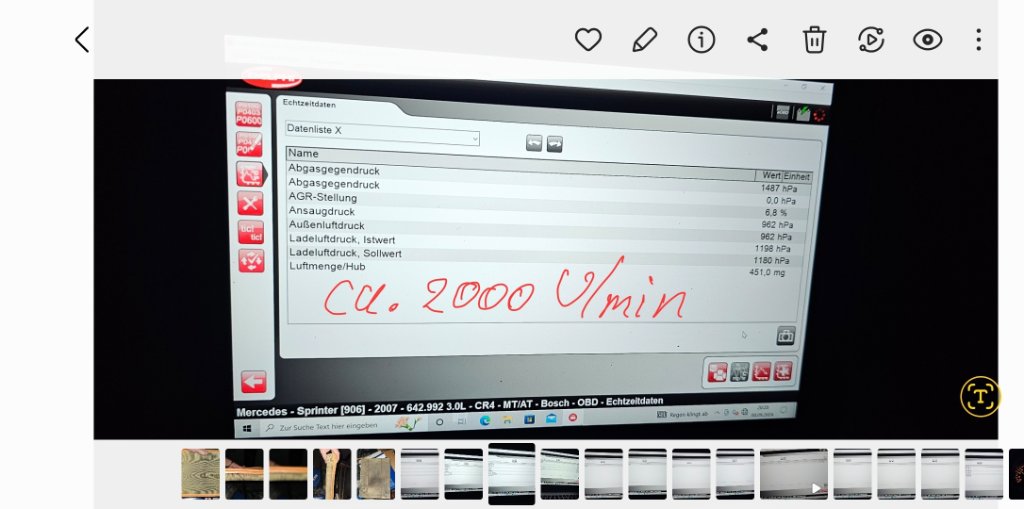 habe leider ein Dauerproblem mit meinem Sprinter 313 W906 313, BJ 2011, 130.000 km. Unter Vollast auf der AB geht immer wieder die MKL an. Verbrauch leicht erhöht, (sehr) leichtes Vibrieren am Lenkrad spürbar - was darauf hindeutet, dass das irgend etwas nicht ganz rund läuft. Als Folge läuft auch immer wieder der DPF voll. So voll , dass er nicht mehr im Stand sondern nur noch auf der AB regeneriert werden kann. Verschiedene Freunde mit Diagnosegeräten / Werkstätten haben das Problem durch den Austausch von Teilen zu beheben versucht. Bereits ausgetauscht wurden: Turbobsteller, das Problem kam wieder. Gerade wurde noch der Luftmassenmesser getauscht (Angezeigter Fehler: Ansaugluftsystem / Ladeluftsystem /Offesetdrift unter Motorlast 2)