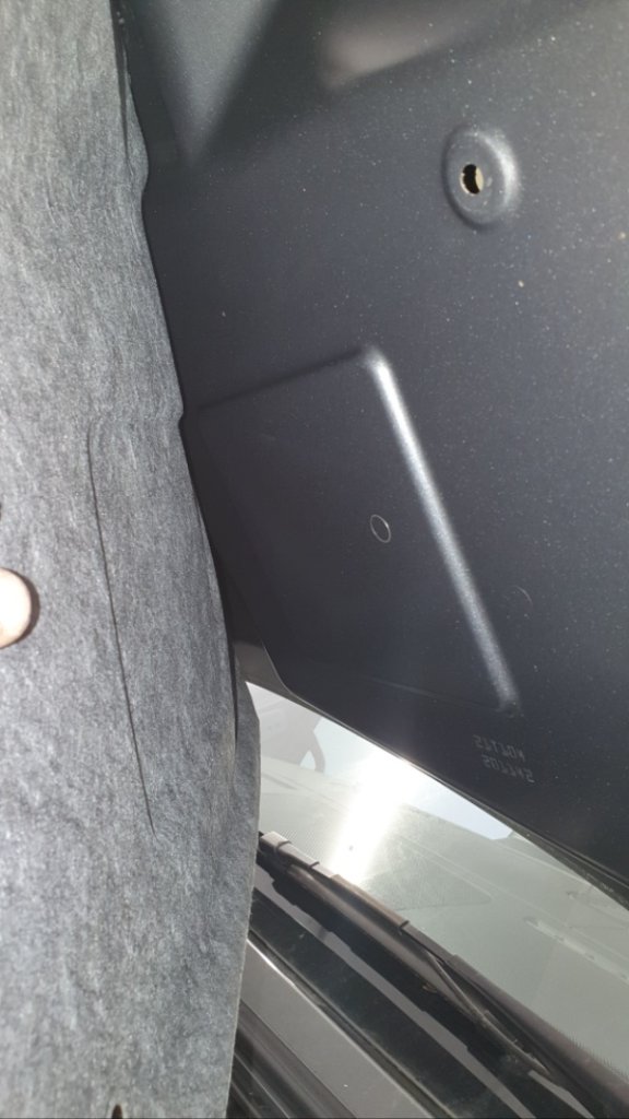 Als ich im Frühling einmal wieder die Motorhaube öffnete, fiel mir dann eine total nasse Dämmung an der Motorhaube auf. Bei genauer Betrachtung war der Grund auch schnell gefunden: eine nicht verschlossene zweite Öffnung in der Motorhaube (siehe Bilder)!