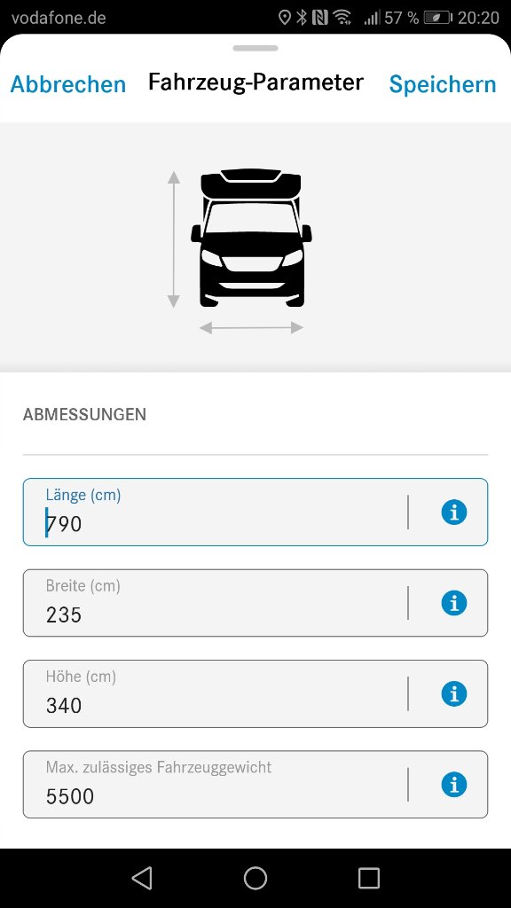 In meinem Garmin kann man die Daten vom Auto eingeben mit dem Ergebnis, daß weite Umfahrungen angezeigt werden die viel Zeit kosten.