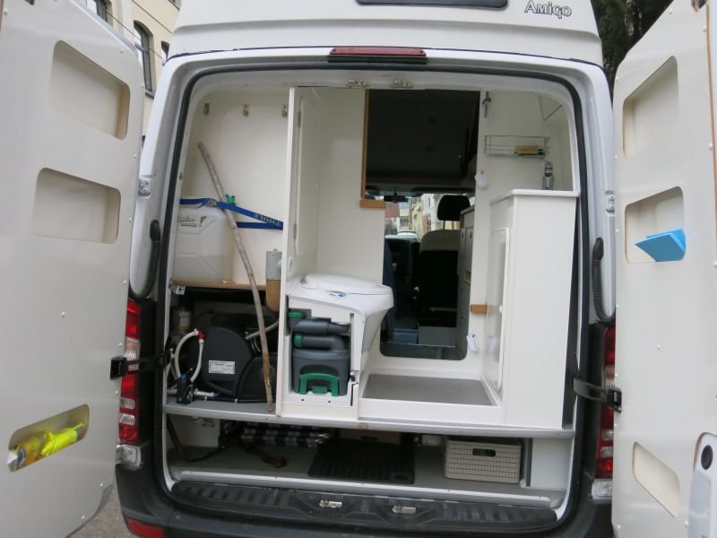 Transport im Auto kommt nicht in Frage. An der Hecktüre ist direkt die Dusche, ich müßte daher immer durch die Schiebetüre schräg umme Ecke und dann wäre die Bewegungsfreiheit im Auto weg.