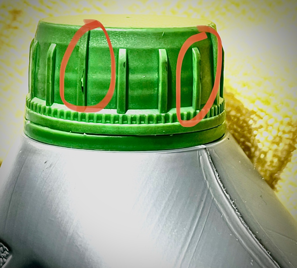 Es kommen anscheinend bei Mobil1 öfter mal Fälschungen vor, daher wird abgeraten bei eBay & co zu kaufen. Aus dem Oil-Club-Forum habe ich da den interessanten Tip, das eine minimale Beschädigung/Druckstelle am Deckel durch die Abfüllmaschine eine Art inoffizielles Erkennungsmerkmal der Originale ist. Davon habe ich mal ein Foto gemacht: