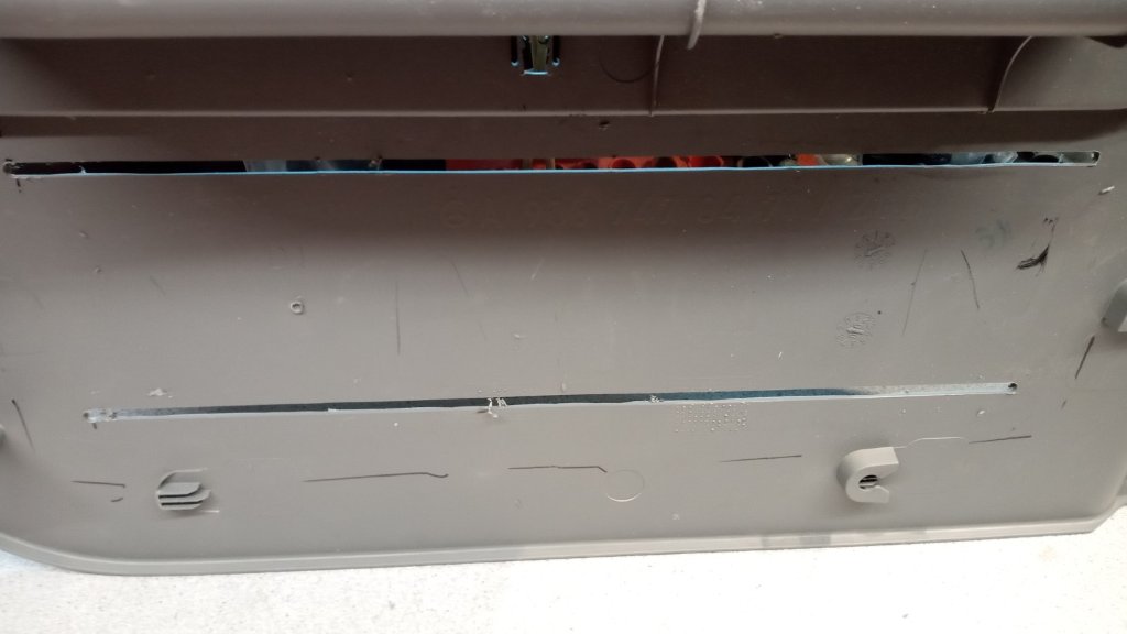 Warum? Später... Damit die Verkleidung nicht unnötig Festigkeit verliert, habe ich mit PU-Karosseriekleber