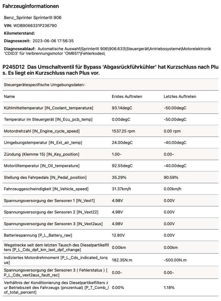 P245D12 -> Das Umschaltventil für Bypass ‚Abgasrückführkühler‘ hat Kurzschluss nach Plus. Es liegt ein Kurzschluss nach Plus vor.