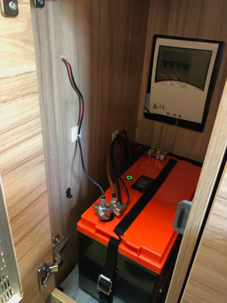 da nach Öffnen der ganzen Kabelbinder die Anschlüsse für die erste Bordbatterie locker in das Nebenfach reichen, werde ich die Lifepo mit diesen anschliessen.