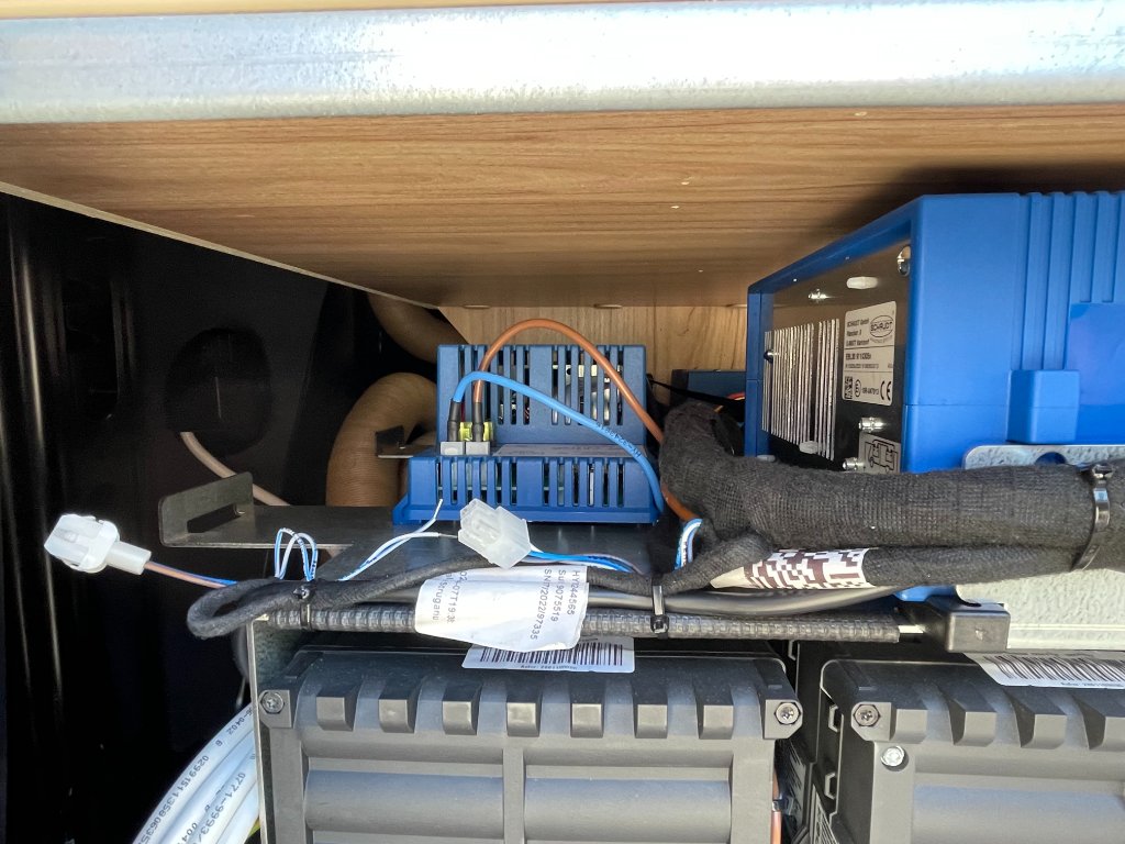 ich bin gerade dabei bei meinem Grand Canyon S Crossover den original Victron Multiplus 1600 Wechselrichter nachzurüsten. Grundsätzlich ist das eigentlich recht einfach durchzuführen da bereits alle Befestigungslöcher vorhanden sind, Kabelbäume schon verlegt sind und im wesentlichen nur das Ladegerät ausgebaut werden muss. Einzig die Platzverhältnisse sind recht eng zum Arbeiten wenn man den Schrank nicht komplett ausbauen will.