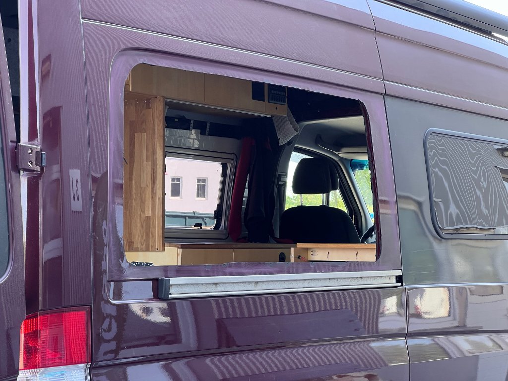 Jetzt isser wieder schigg und bereit für die Montage der Flares von Functional Design. Das Längsbett weicht einem Querbett, Küche mit Induktion ist schon drinnen, Warmwasser folgt dann.