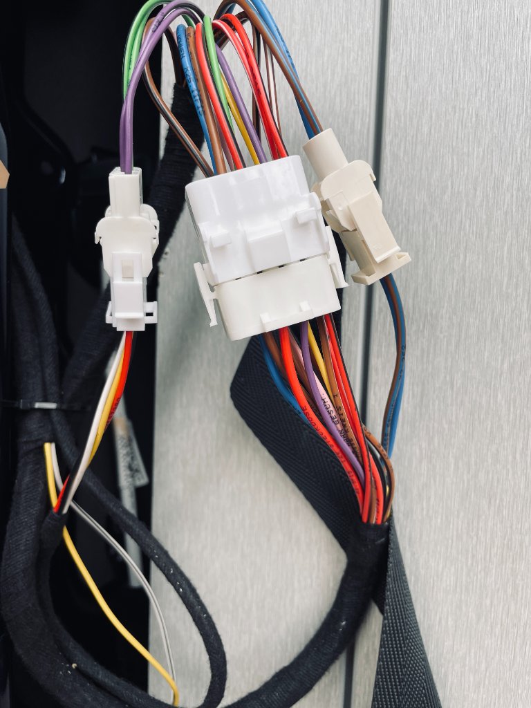 Das rote Kabel trägt z. B. die Aufschrift "K1.9F15 12V Steckdose".