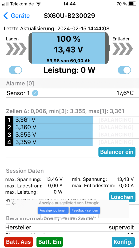 Windy-ZX hat geschrieben: 15 Feb 2024 13:27 die von mir benutze App nennt sich "Xiaoxiang BMS". Sie ist ein einfacher Monitor der Grundwerte (Kapazität/Lade und Entladestrom/Temperatur/Volt/Einzelzellspannung und noch so Kleinkram).