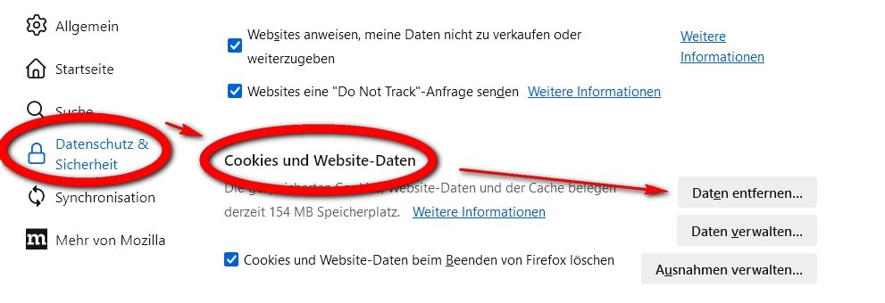 ... "Alle Cookies löschen" ...