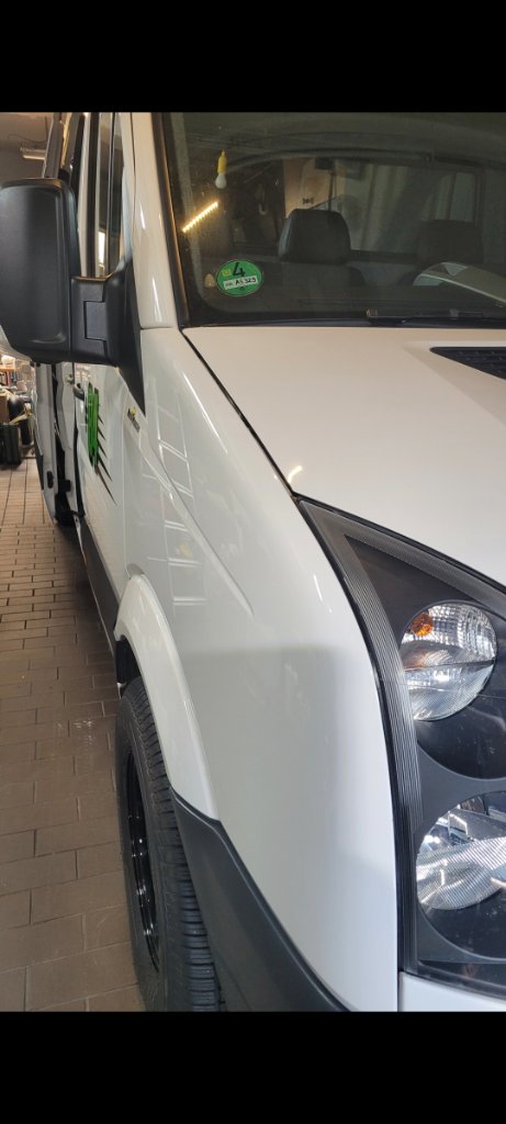 Ich habe den Lack von unseren Crafter mal wieder ein bisschen versiegelt. Obwohl wir bei dem weißem Lack kein Problem mit dem Auskreiden haben, würde das den Betroffenen auch helfen.