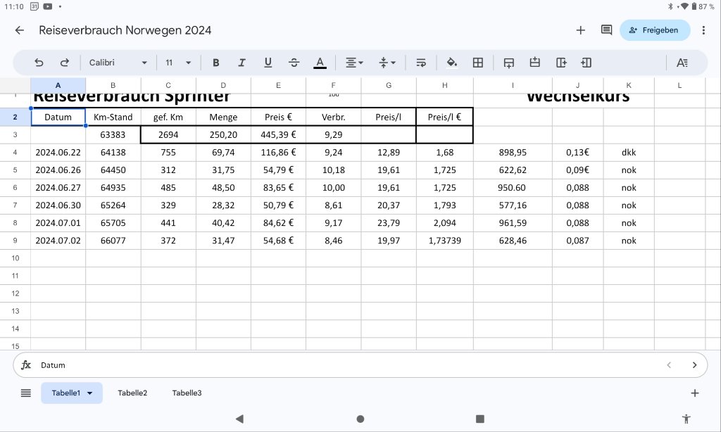 Die Tabellenkalkulation auf dem Tablet ist etwas ..... oder ich zu alt dafür