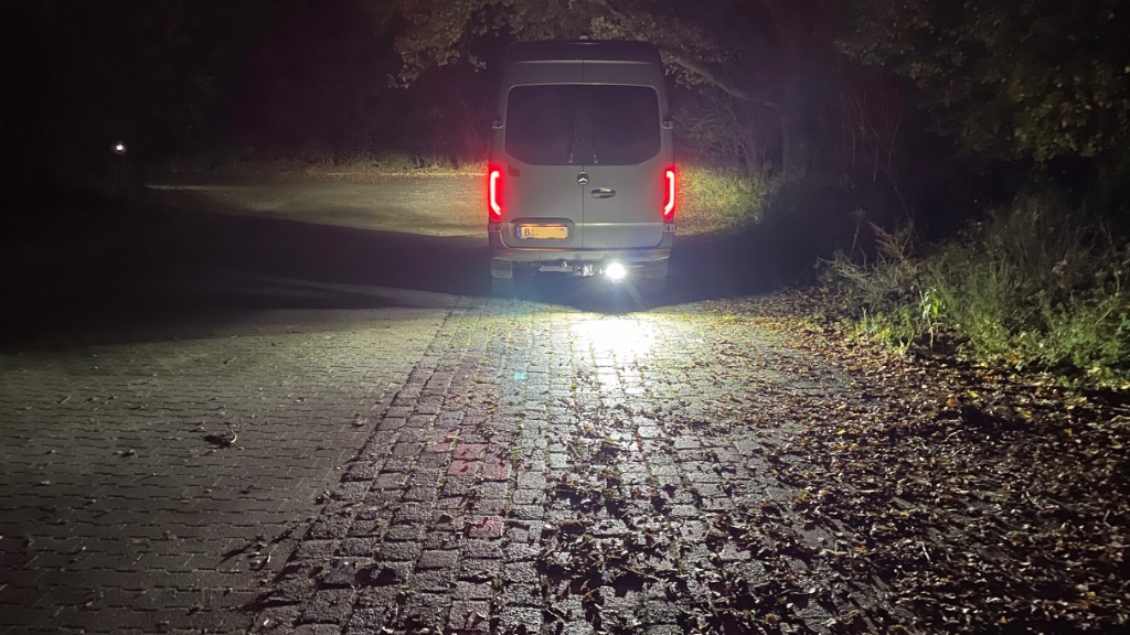 bringt eine taghelle Fläche hinter das Auto. Bei waagerechter Montage würdest