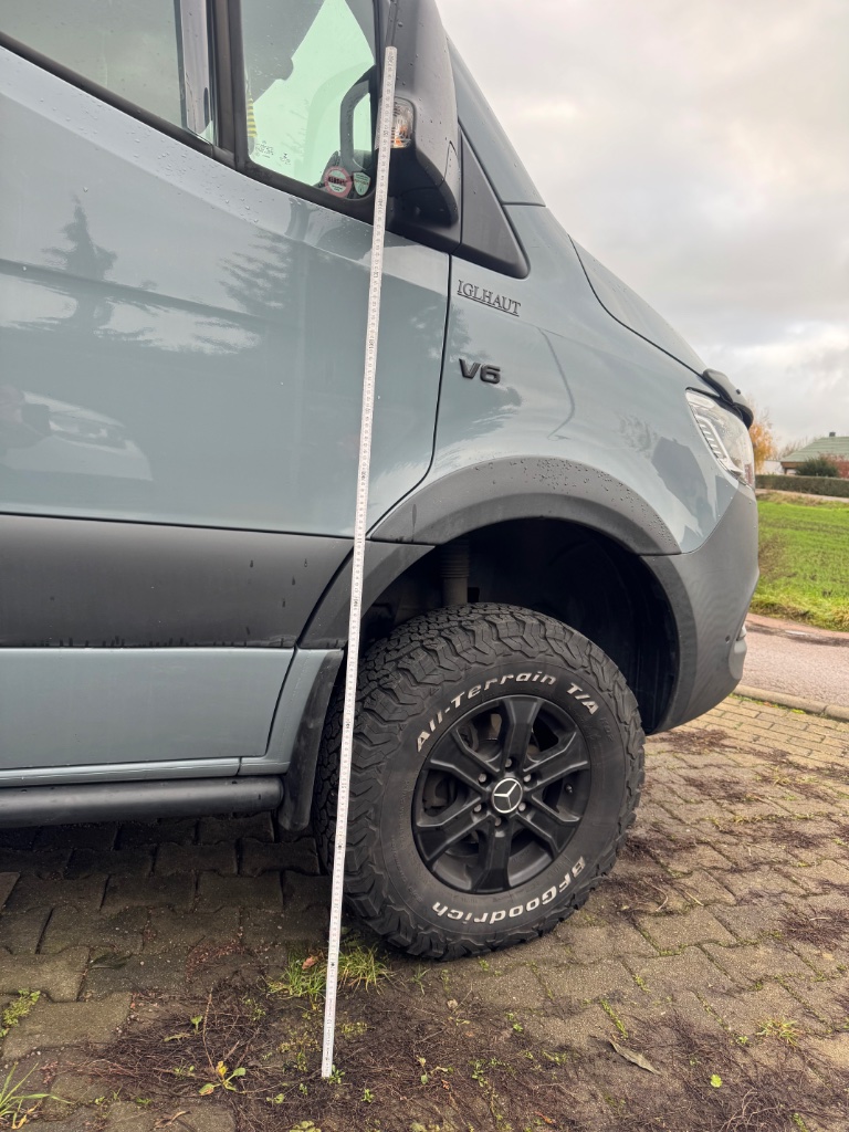 Die Höhe hinten (max beladen auf 3,5t) ist jetzt bei 65cm Mitte Achse bis Radhauskante. Fahrverhalten ist exakt gleich zu vorher - kein Mehr an spürbarem Wanken o.ä. - wenn Taubenreuter liefert (50ste KW), kommen noch Koni Dämpfer vorn und hinten rein und dann bin ich (hoffentlich