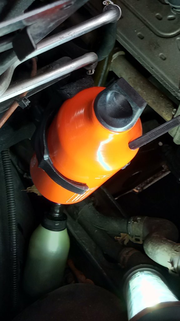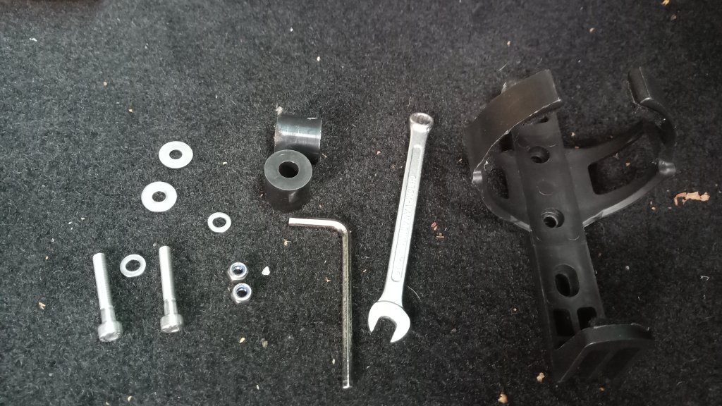 So, ich habe meinem Provent ein kleines Upgrade gegönnt. Die alte Flasche war damals eine schnelle, aber keine dauerhafte Lösung. Jetzt eine 0,5L-Kraftstoffflasche (Camping / Motorrad) und ein Flaschenhalter vom Fahrrad. Am Blech unterhalb des Luftansaugkastens habe ich zwei freie Bohrungen entdeckt. Sie passen genau zum Lochabstand des Flaschenhalters und ersparen mir weitere Bohrungen am Auto. Los geht's...