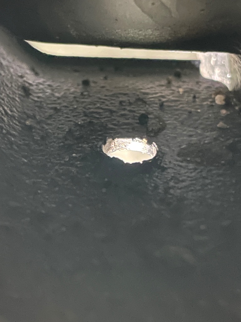 Und das sammelt sich dann auf diesem Blech. Ich habe mit einem Stufenbohrer