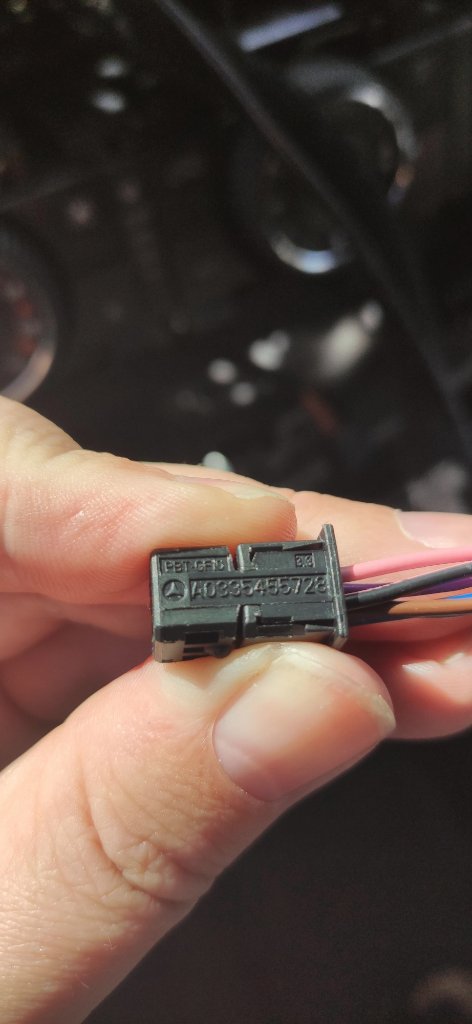 Ich versuche derzeit an mein Commant NTG 2.5 (A906 900 09 04) mittels des original Nachrüstsatzes FR7 die original Rückfahrkamera anzuschließen. Strom unterm Sitzkasten geholt, Kamera per eckigem Stecker und Fakra-Stecker mit dem Kabelsatz verbunden, am Heck Masse angeschlossen, Fakra Stecker am Radio angeschlossen. Hat alles soweit geklappt. Aber: Wo muss dieser Stecker (siehe Bild, A0335455728, dürfte für die Audio-Übertragung von der Kamera zum Radio sein) am Radio-Ende des Kabelsatzes hin? Im Radio ist kein Platz und in der Nähe des Radioschachtes hab ich auch nichts gefunden. Hier im Forum hab ich irgendwas von "unterm Kombiinstrumen" gelesen, weiß da jemand genaueres?