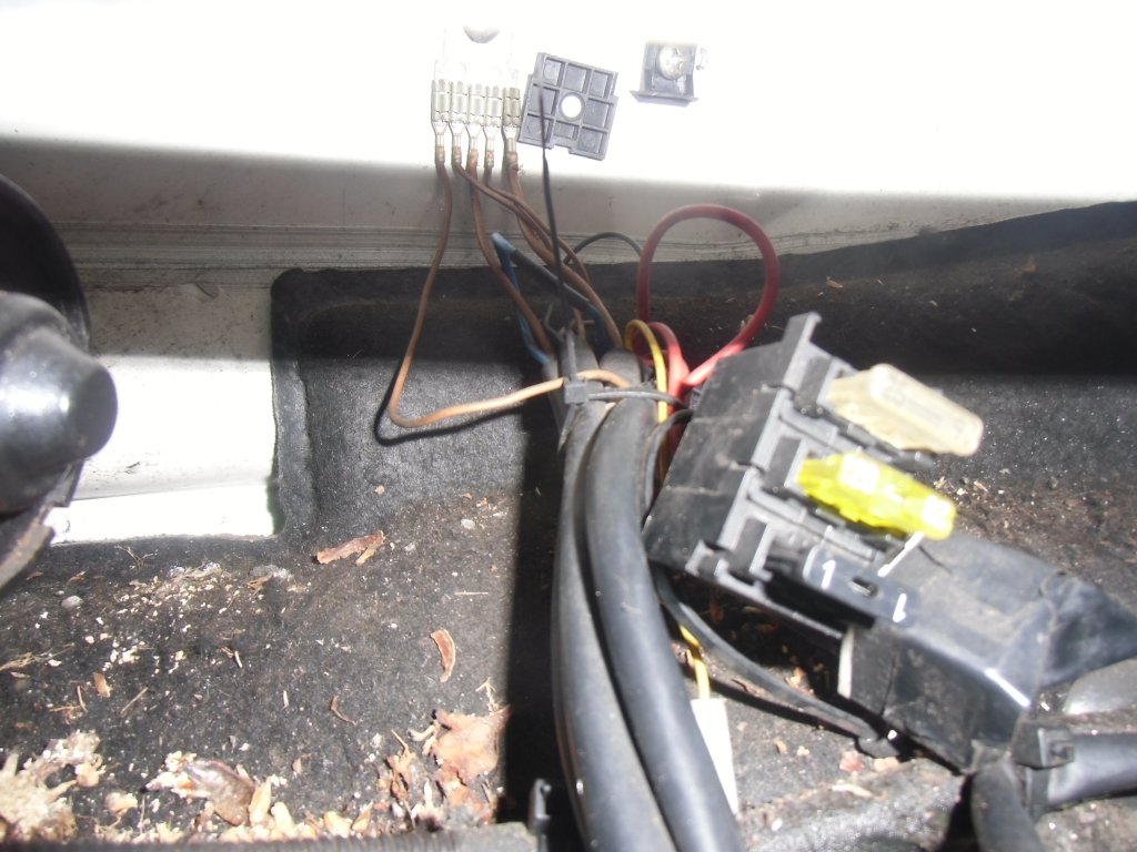 Am Gebläsemotor ist das weiß/schwarze Kabel zum Vorwiderstand durchtrennt und eine Abzweigung (schwarz/rot) zu einem Relais (vorne links), von dort zu einem kleinen Sicherungskasten und von dort irgendwohin ins Nirgendwo (unterer Bereich Armaturenbrett vorne links) gezogen worden. Weiß Jemand, was das für einen Grund haben könnte und gehört irgendwas davon dorthin?