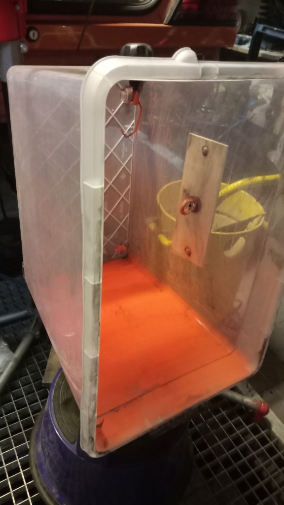 Alles kam in eine 80L-Box und wurde dort beschichtet. Das ging natürlich wegen der