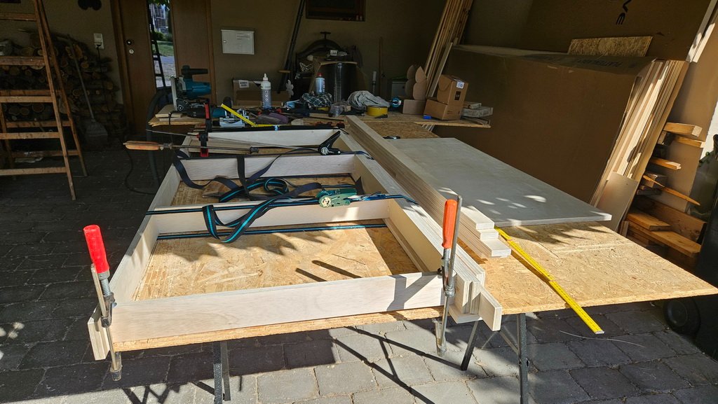 Der Möbelbau erfolgte mit einfachsten Mitteln, die Tauchkreissäge war mein Hauptarbeitsmittel. Die Queenply-Platten lassen sich aber auch gut verarbeiten.