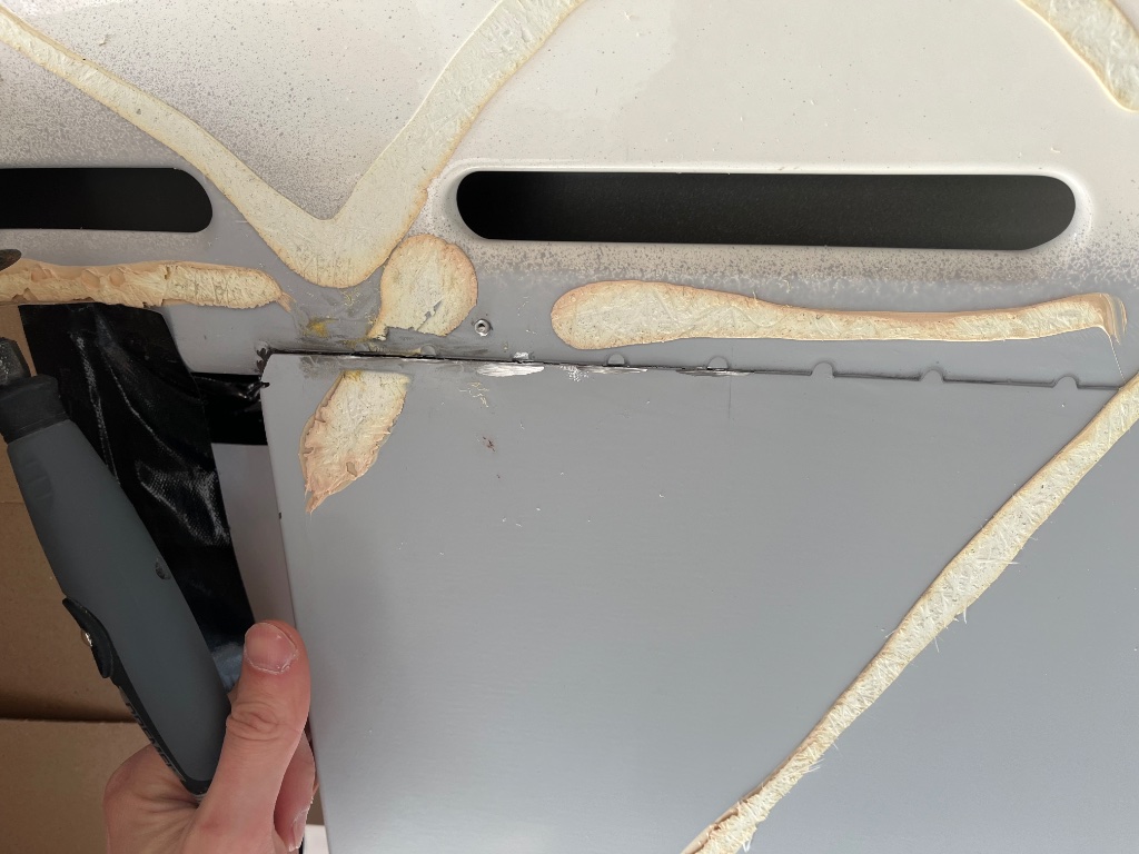 Habe dort wo es von der Tiefe her ging, sprich wo zur Außenhaut hin genügend Platz war und das Spaltmaß zwischen Platten und Holmen mit der Stichsäge die Schweißpunkte durchtrennt.