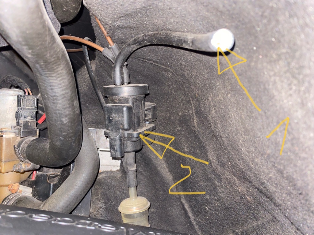 Kann mir wer sagen was den Vorbesitzer bewegt haben könnte den Schlauch (1) mit einer Schraube zu verschließen und wo diese verschlossene Ende normal angeschlossen sein sollte ?