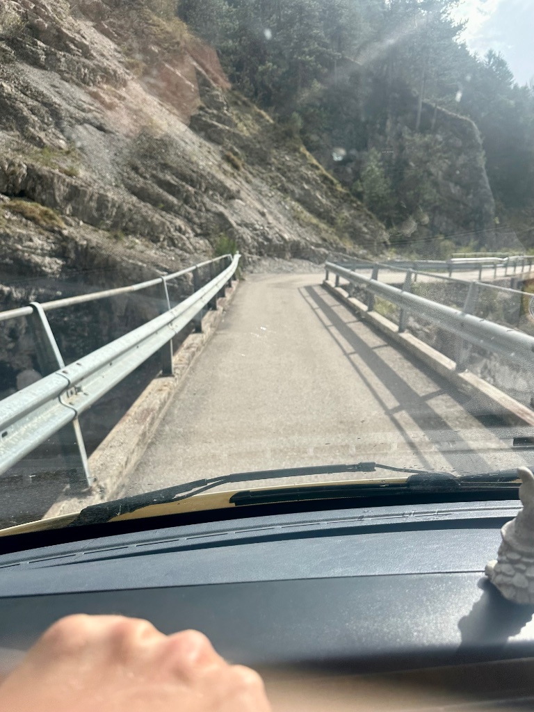 Morgens als wir gerade Abfahrbereit waren kam ein ziviler Polizeiwagen…natürlich machten wir nur Pause und haben nicht übernachtet, es war schon etwas Redegeschick nötig um die beiden sehr netten jungen Beamten davon zu überzeugen, die Frontscheibe war noch leicht beschlagen und den Beleg von der Tunneldurchfahrt am Abend zuvor hatte ich…äh…hab mit dem Handy bezahlt!