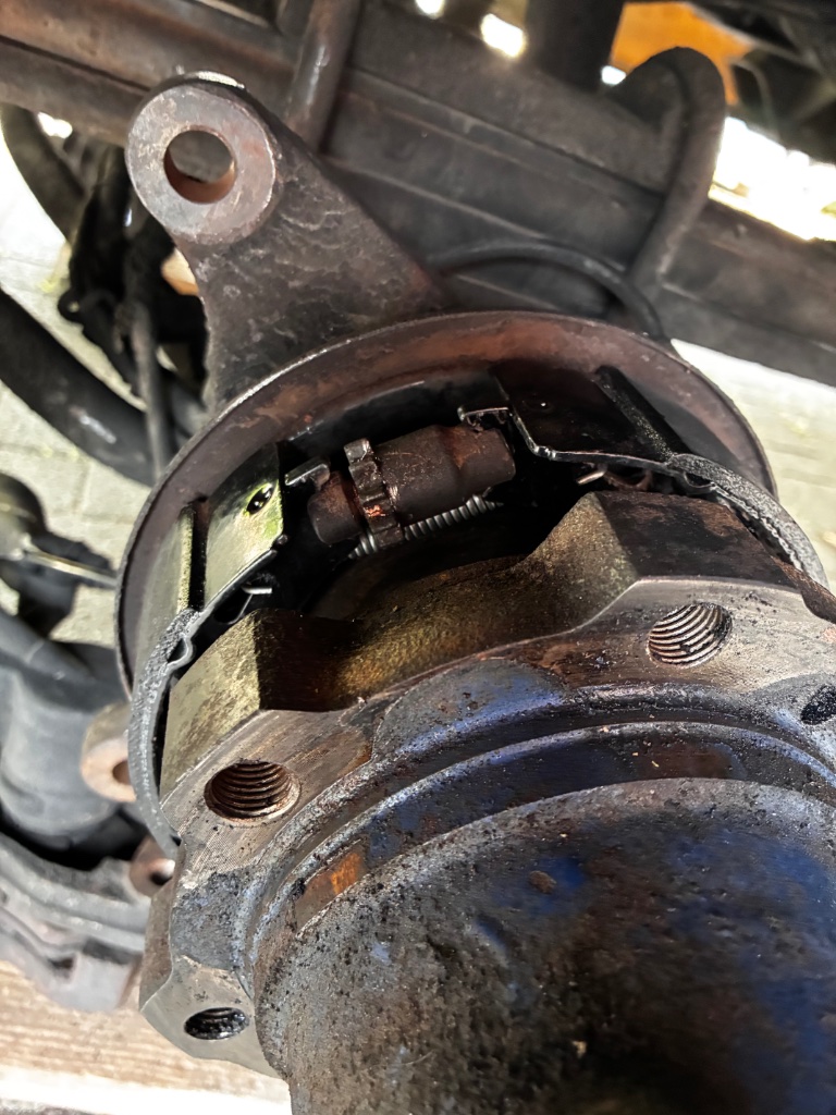 So ganz scheint es noch nicht zu passen mit der Einstellung. Aber da Taste ich mich ran. Eine Seite ist komplett blockiert die andere kann ich ganz leicht hin und her „rucken“. Aber alles nur per Hand und aufgebockt. Ich denke nach kurzer Fahrt schleift sich das noch hin und die Backen setzen sich noch mal.