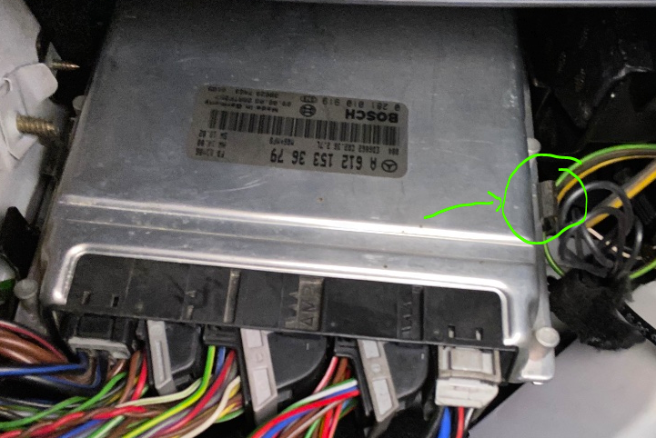 Links im Fußraum des Fahrers neben dem Bremspedal erinnere ich mich nur die Buchse für den runden Diagnosestecker gesehen zu haben.