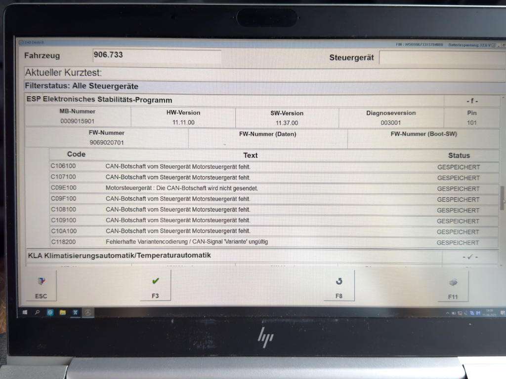 Beim Auslesen zeigen sich Fehler im Motorsteuergerät, ESP, Kombinstrument. Vor allem “ Motor Can Bus “ taucht oft auf, siehe Bilder.