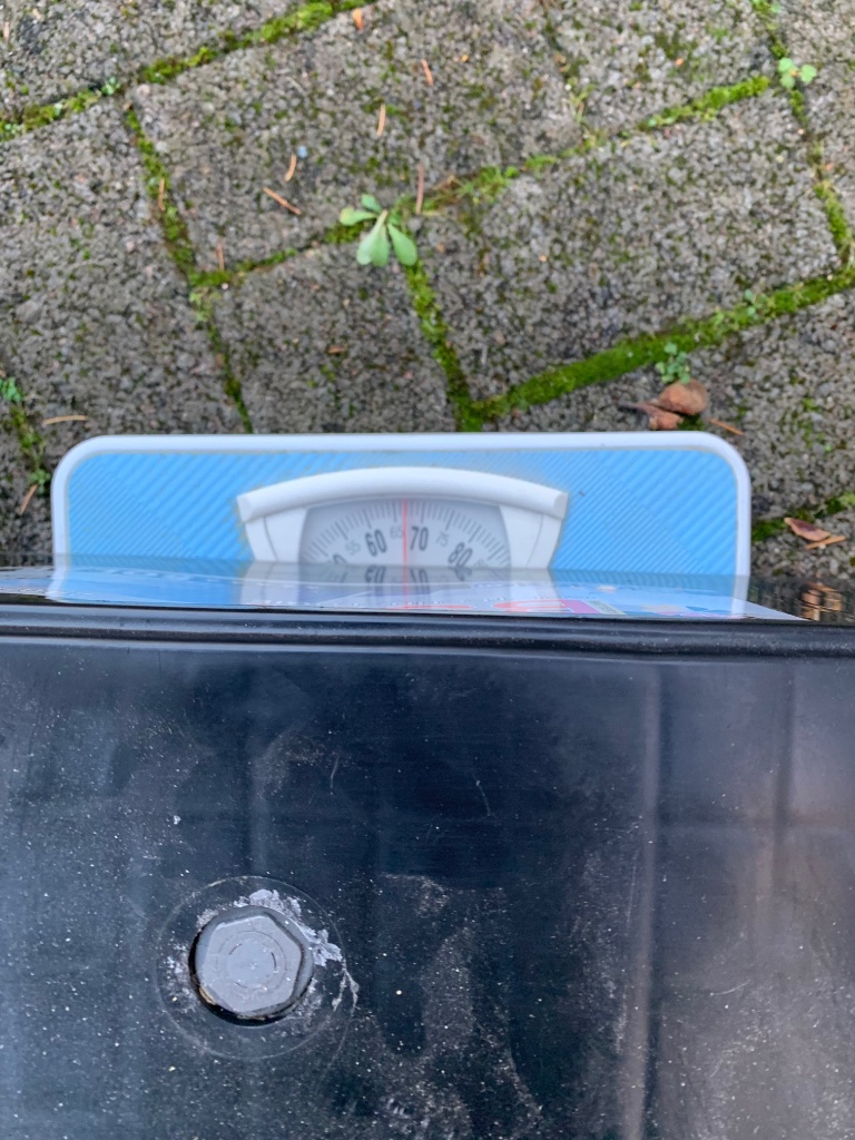 Heute mal die alte Batterie ausgebaut und gewogen. Die steht vor der Heckgarage. Da hinten quasi überladen und vorne 300Kg Reserve, soll die Batterie nach vorne hinter den Beifahrersitzt wandern. Dann als LiFePo4. Hat den Effekt, dass sie auch dichter am Motor, den Verbrauchern und Solarregler steht. Und alleine an der Batterie besteht ca 40kG Einsparpotenziel bei gleicher Ah