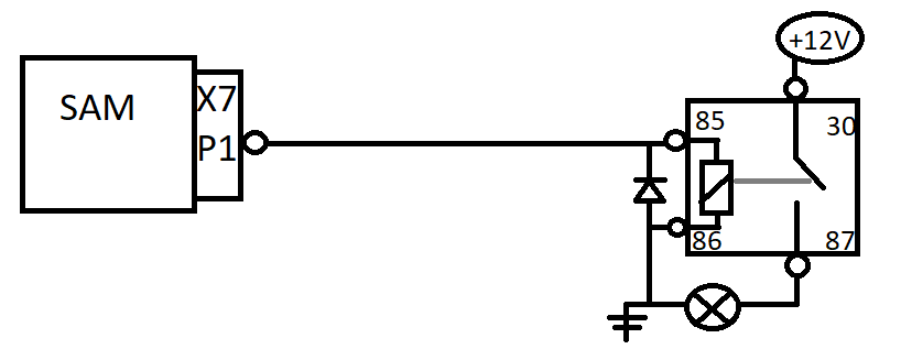 Möglichkeit 1: Zwischen SAM und Kontakt 85 vom Relais: Möglichkeit 2: Parallel- zu 85 und 86 vom Relais. Was ist denn jetzt richtig?