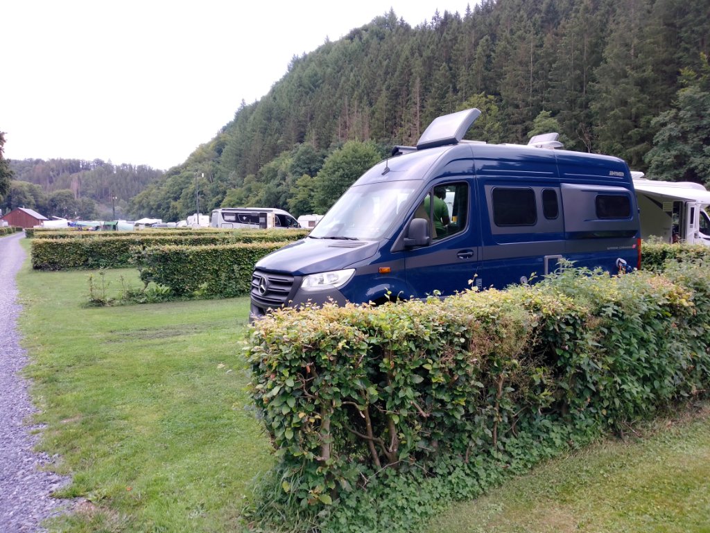 Gestern die Jahresinspektion der Vollluftfederung bei Goldschmitt Polch, alles gut. Auf dem Stellplatz in Valwig konnte die Vollluftfederung fein automatisch nivelieren, etwa ein Ausgleich wie dicke Auffahrkeile. Heck runter, Bug hoch. 8)