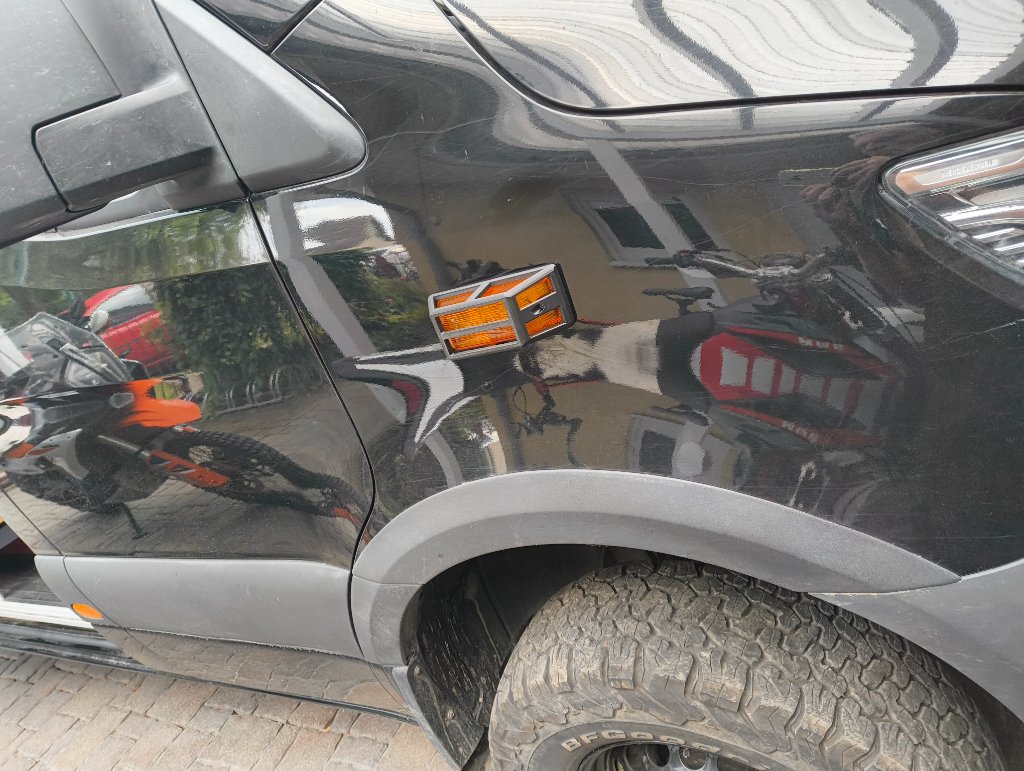 Da kein Schutzgitter montiert war, wurden die Kotflügel nicht verbeult. Für kleines Geld neue Blinker montiert und gut.