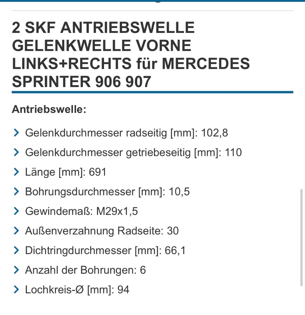 Habe die Tage eine Welle von SKF verbaut, da passte der Blechdeckel vom Gelenk nicht in den Getriebeflansch von Vorderachsdiff, musste von der alten Welle umgebaut werden.