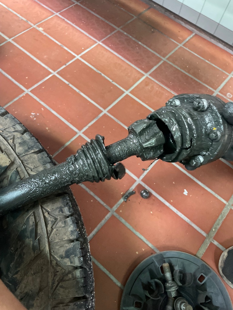 heute haben wir es übertrieben beim Geländefahren und die rechte Antriebswelle vorne ist gebrochen.