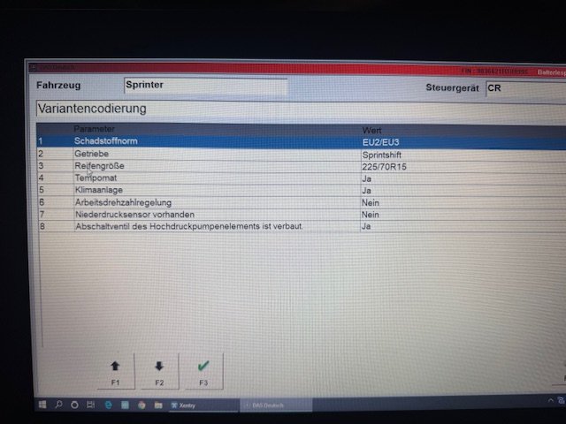 Variantencodierung , Injektorklassierung , Fahrgestellnummer und Hauptgeschwindigkeits Begrenzung (falls vorhanden) eintragen.