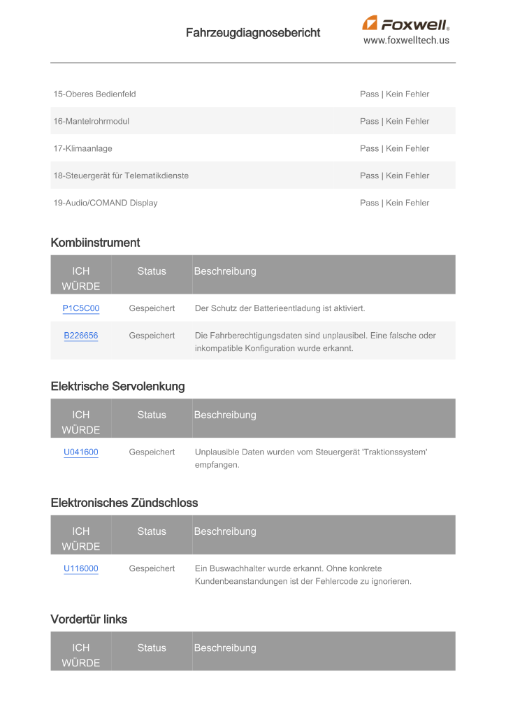 Gedrückt habe ich den aber nicht, da ich erst die Foxwell Fehler mit der Fehlerliste von Xentry vergleichen wollte.