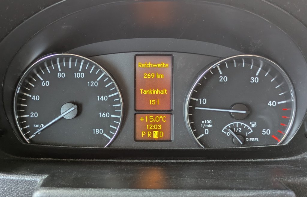 Mir ist bekannt, dass der Sprinter den Tankinhalt misst/anzeigt indem er den Verbrauch berechnet. Der Schwimmer im Tank wird nicht benutzt. Selbst die gelbe Warnlampe wird auf diese Art angesteuert.