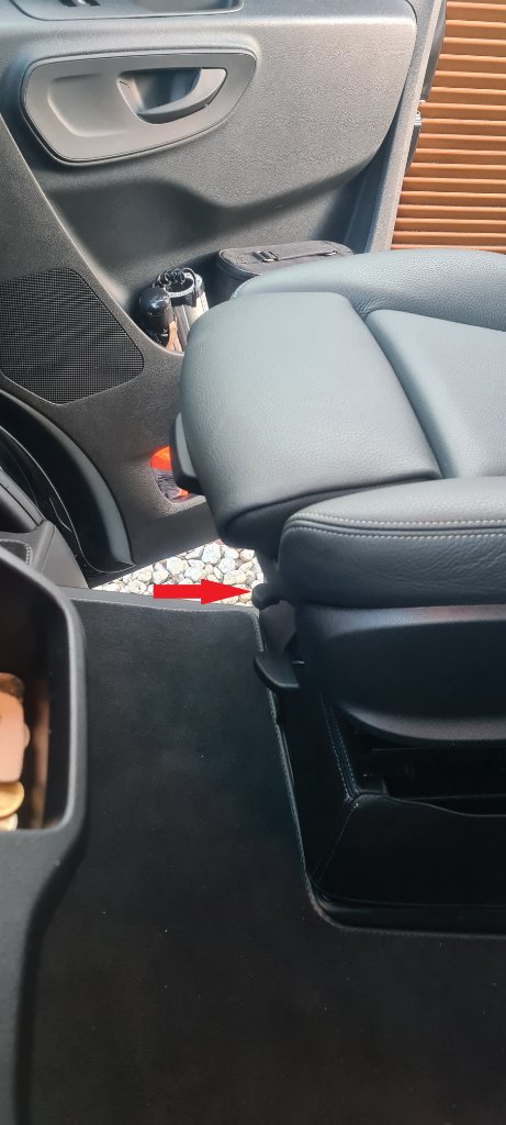 den Hebel habe ich so gebogen das er im Durchgang nicht stört und sich auch noch gut erreichen lässt wenn er im gedrehten Zustand zwischen Außenwand und Sitz ist.