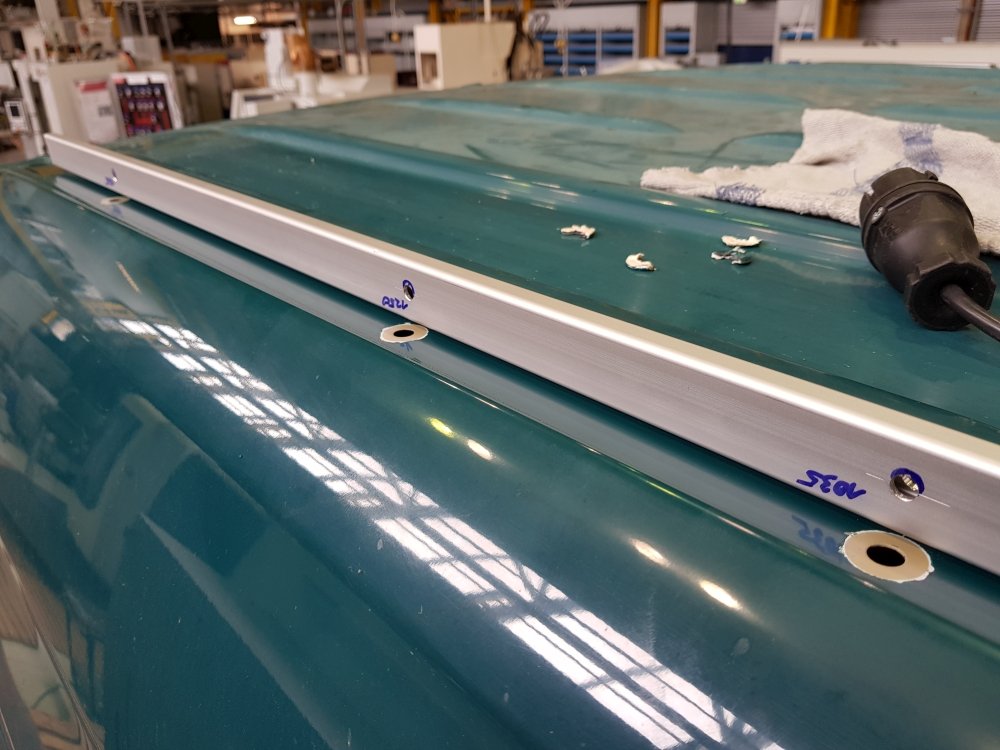 Wenn ich das bei meinem Ausbau richtig gesehen habe, sind im Blechdach fertige Durchgangs Bohrungen, welche mit Kunststoff stopfen vor der Lackierung verschlossen wurden. Kommst du von innen noch dran, dann befestigt du mit den dafür bei MB vorgesehenen Teilen. Kommst du nicht mehr dran, weil Isolierung und eingebaute Decke und Mobiliar, klebst du von aussen die Original - oder Nachrüst- Schienen mit geeignetem Karosseriekleber auf und zusätzlich noch z. B. Nieten durch.