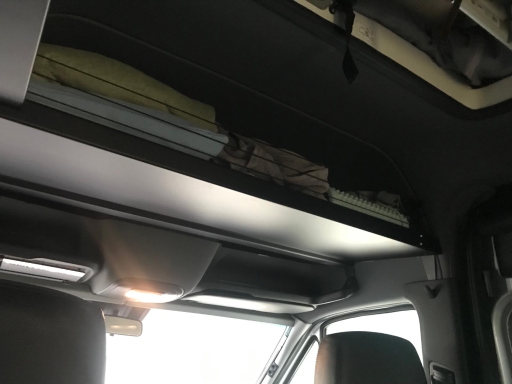 Die Blechablage über den Fahrersitze sieht prima aus. Sowas habe ich mir letztes Jahr auch (von Dutch Van Parts) eingebaut und dort sind nun alle Schuhe und Jacken untergebracht.
