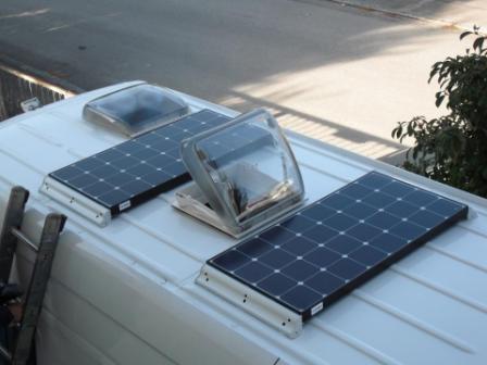 So letztes Wochenende die Solarpaneelen von cleverSolar monochristalin 2mal 100W , Ausbeute je m² 156 WP, montiert, an die kommen 2 180AH AGM Batterien und der Sinuswechselrichter.