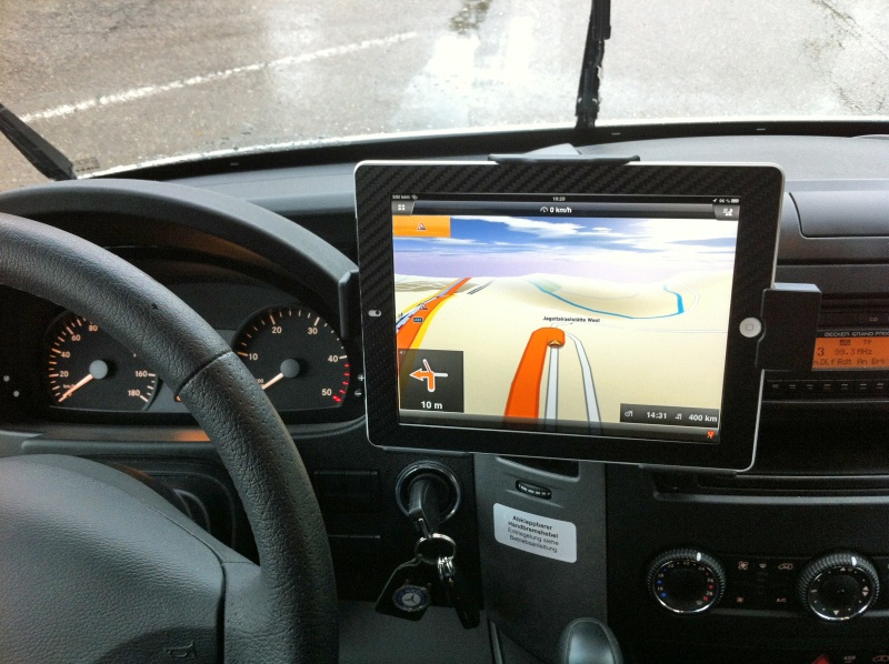 vom iPad im Sprinter. Die Brodit-Halterung ist stabil und vibriert