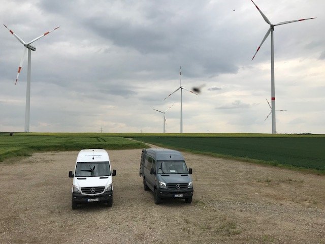 Der Sprinter hat jetzt die ersten 10Tkm weg, und auch schon die erste große Delle in der Hecktür. Als Zugfahrzeug hat er sich schon gut bewährt, hier mit 3,5t am Haken. Die Reifen sind top, auch bei Nässe und Schnee. Einzig der Verbrauch nervt gewaltig, und das Klong im Antrieb und die spinnende Standheizung.....