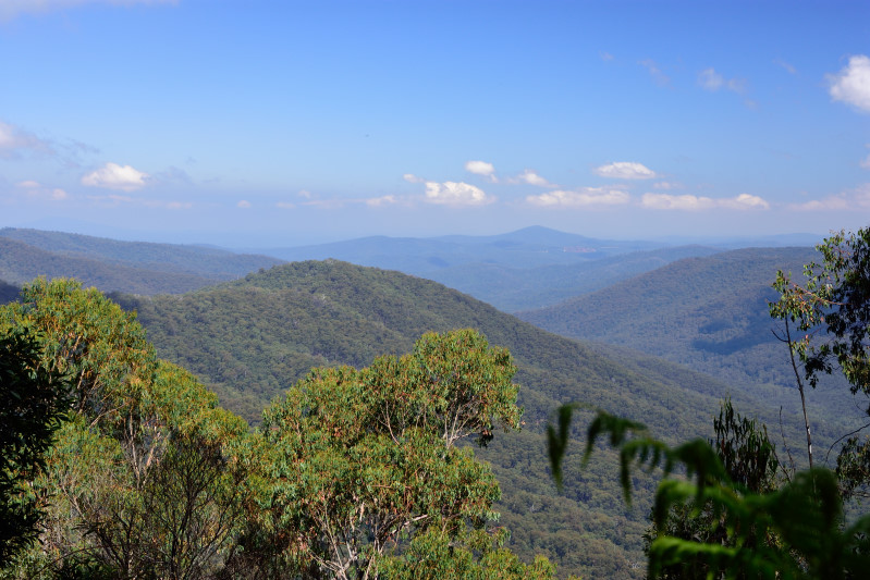 Ich bin heute vom Zeltplatz in Marysville gestartet und habe mich durch die wirklich unendlichen Wälder der Great Dividing Range geschlängelt. Soo eine schöne Fahrerei….enge kurvige Straßen, ganz ganz hohe Bäume und manchmal einen schönen Blick zu den anderen Bergen. Ich war heute richtig froh, wieder einen Geländewagen gemietet zu haben. Die Gravelroads wären zwar auch mit einem 2WD zu fahren gewesen - nur wäre halt im Falle eines Unfalls kein Versicherungsschutz gewesen. Und wie knapp das sein kann, durfte ich heute erleben. Da bretterte mir in einer unübersichtlichen Kurve ein fetter Holzlaster entgegen. Da war nicht viel Platz zum ausweichen…woher kommt am Sonntag im Wald ein Holzlaster???