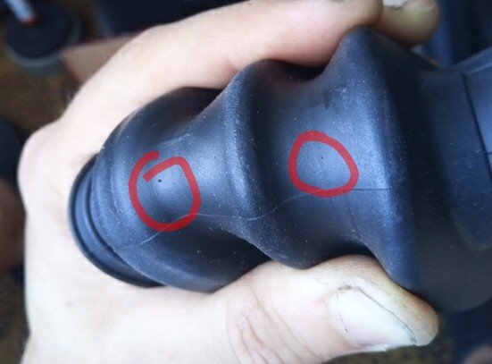 Habe meine alte Manschette rausgesucht, auf den Bildern kann man gut die Risse erkennen, die Radseitigen Manschetten waren bei mir auch eingerissen. Das Radlager muss durch den Riss Sand abbekommen haben, es knirschte.