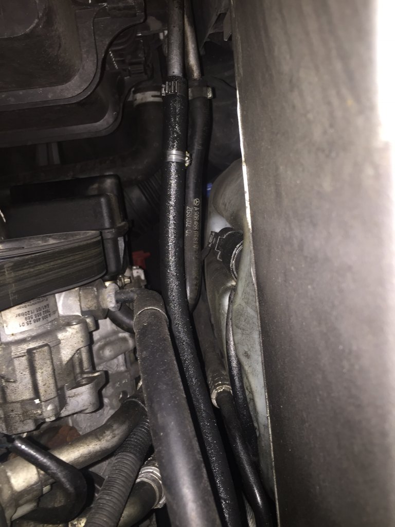 Da gab es einen Rückruf, da es den Schlauch abrüttelt bzw. ich vermute bei Bewegung des Antriebs eher den Schlauch abzieht. Der obere Schlauch ist in einem S-Schlag gelegt, den zieht es da eben nicht ab.