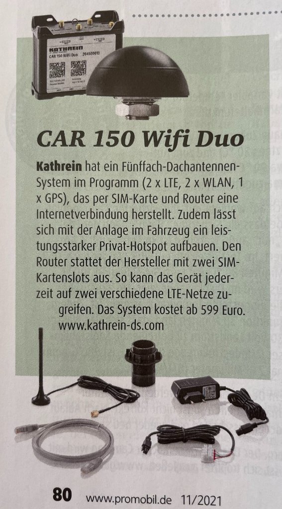 Von Alphatronics fand ich Beiträge/Werbung in der ProMobil, jedoch schockten mich deren m.E. horrenden Preis inkl. / zzgl. Antenne(n)Wolfi11 hat geschrieben: 13 Jun 2022 16:15 Ich möchte den Router von Alphatronics ... eine 2. Karte im Ausland ... ohne die erste Karte entfernen zu müssen.